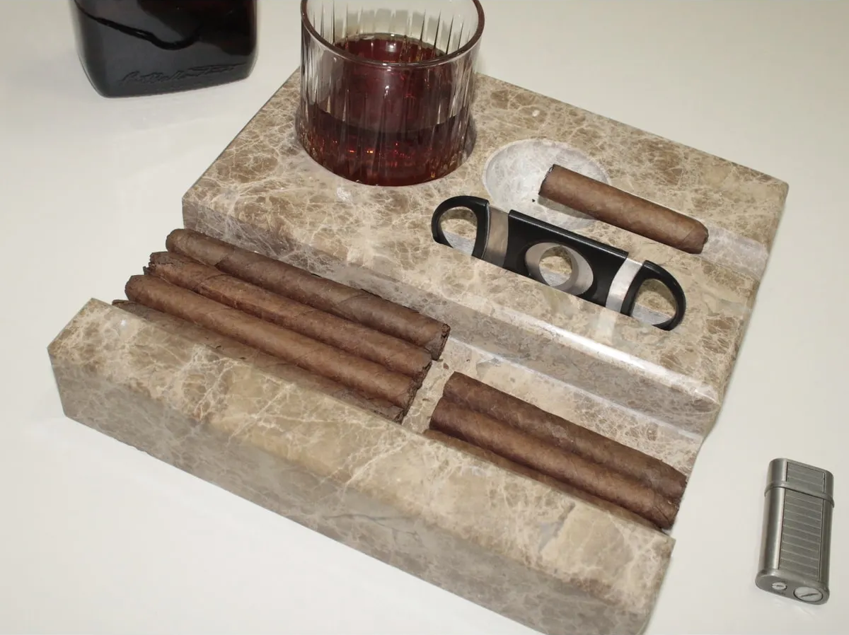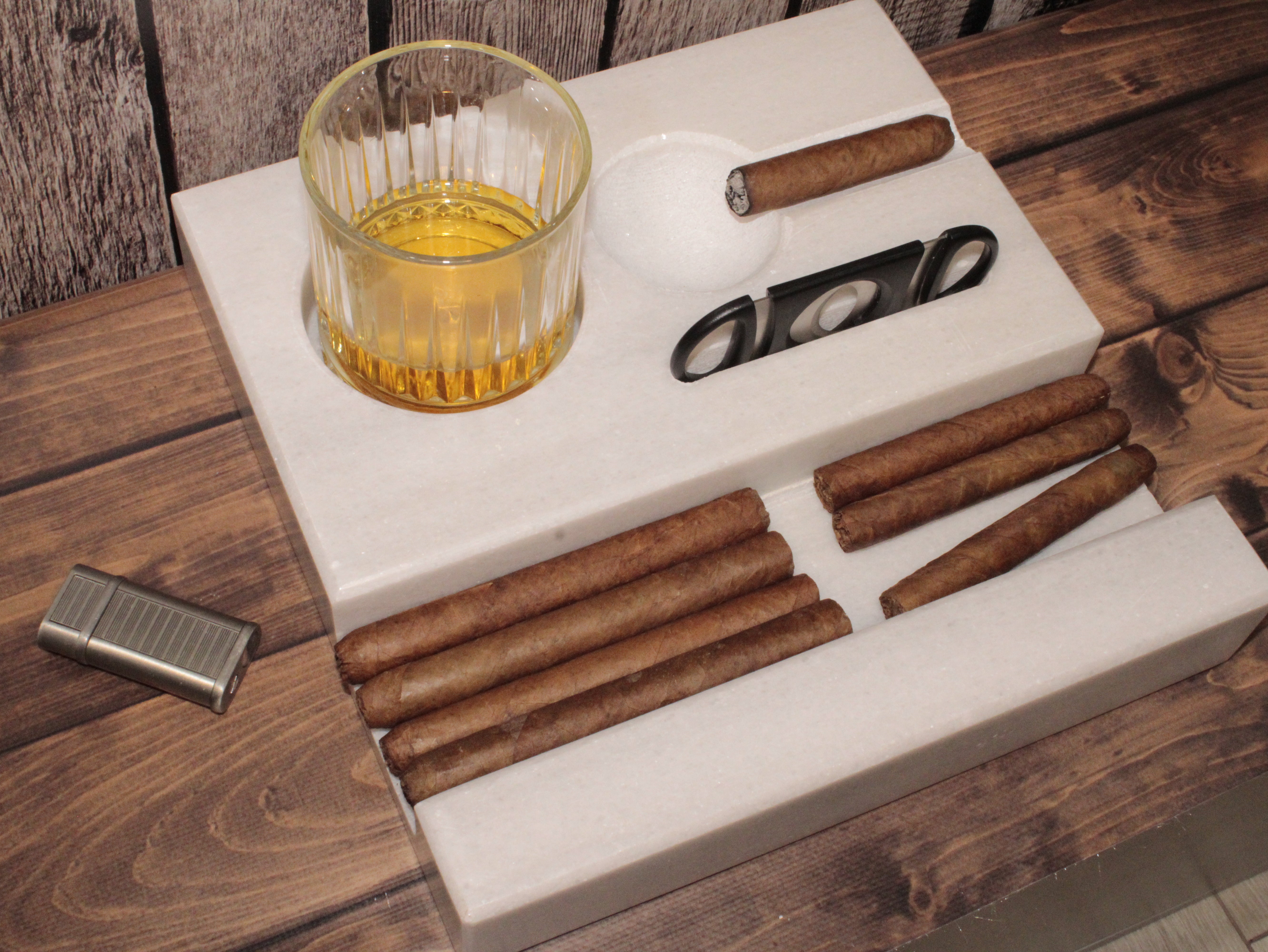 El Yapımı Kişiselleştirilebilir Mermer Viski ve Puro Seti – Lüks Hediye Seçeneği