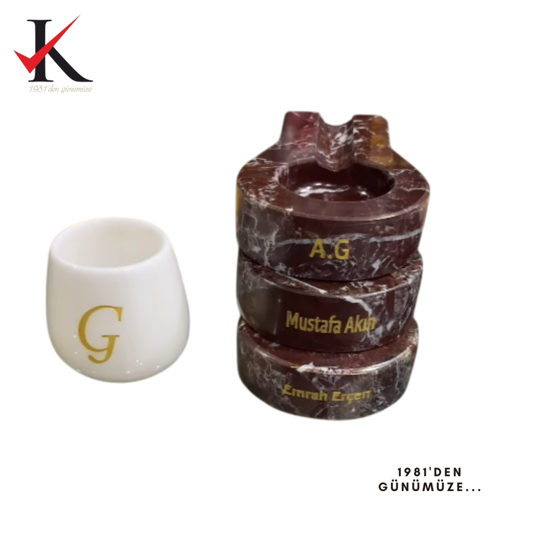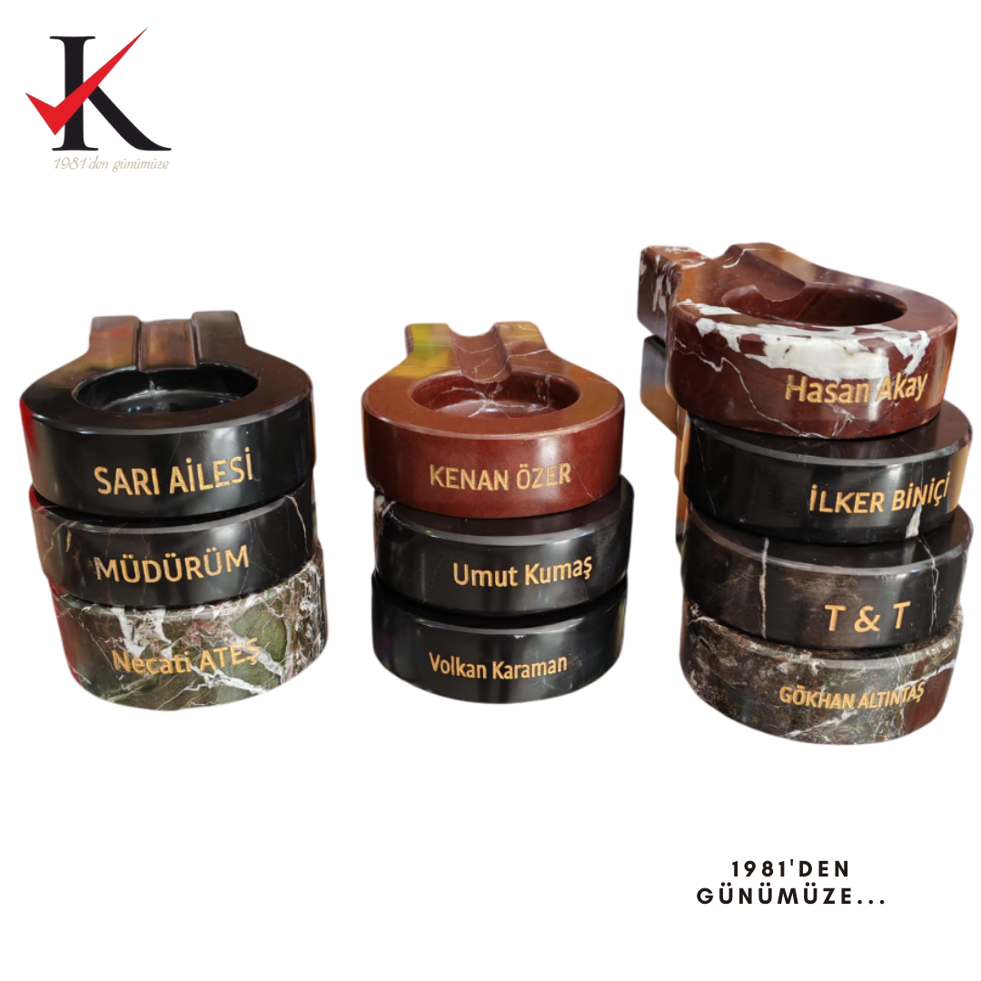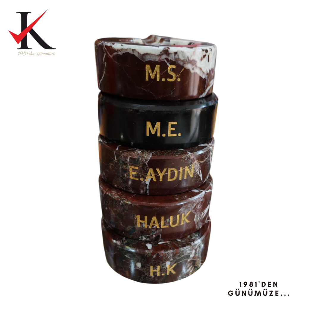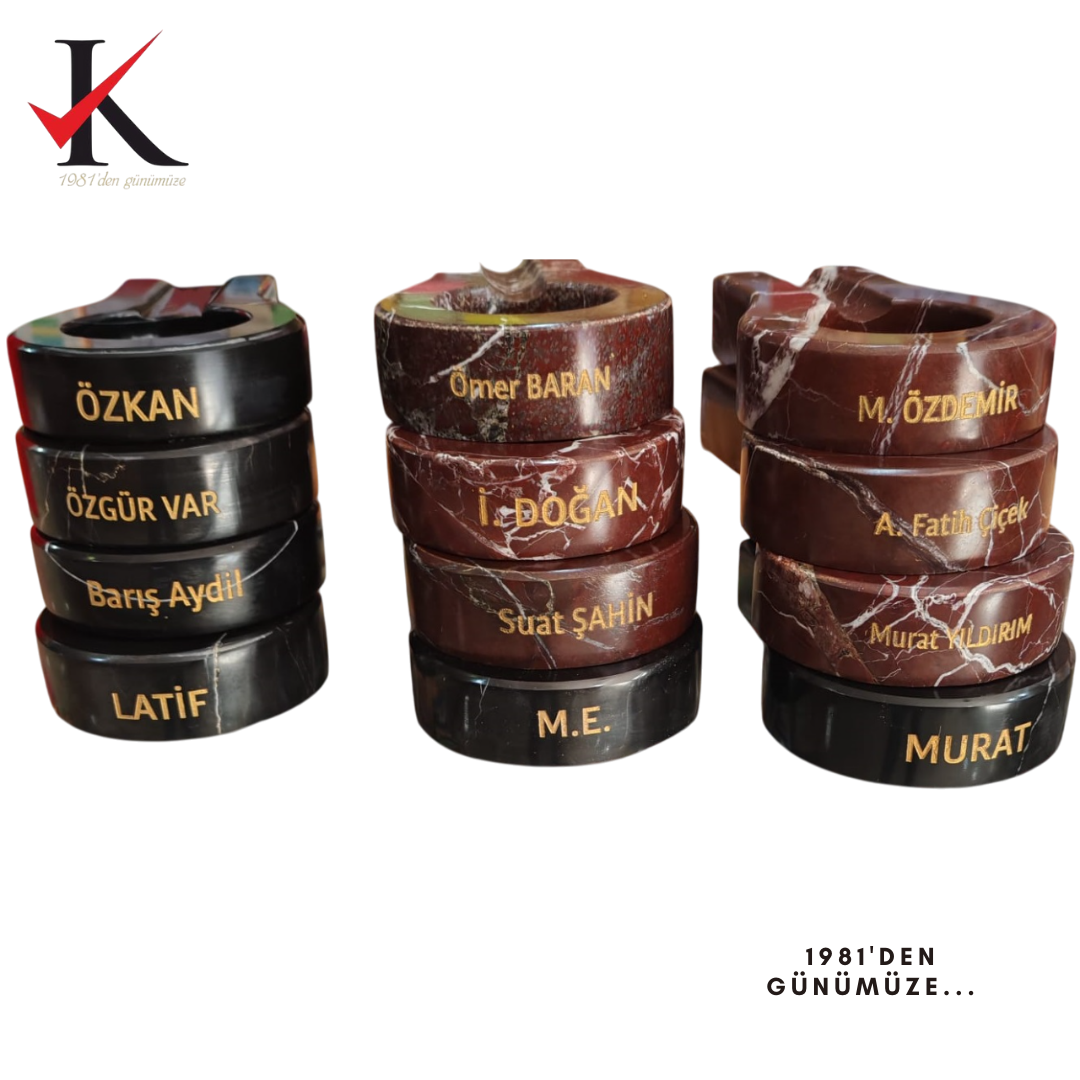 Kişiye Özel El Yapımı Mermer Küllük - 2 Renk Seçeneği ile Şık ve Kişiselleştirilebilir Tasarım