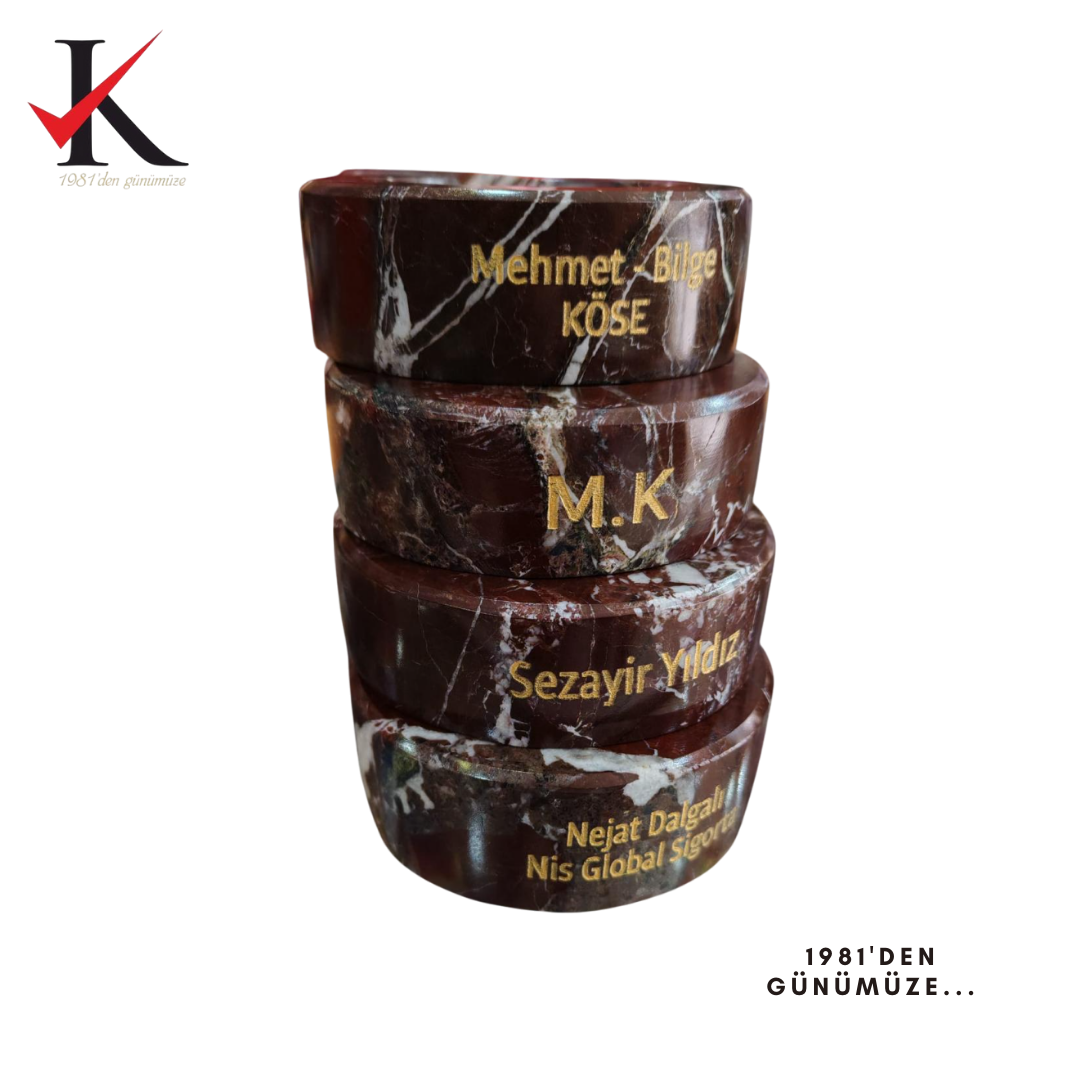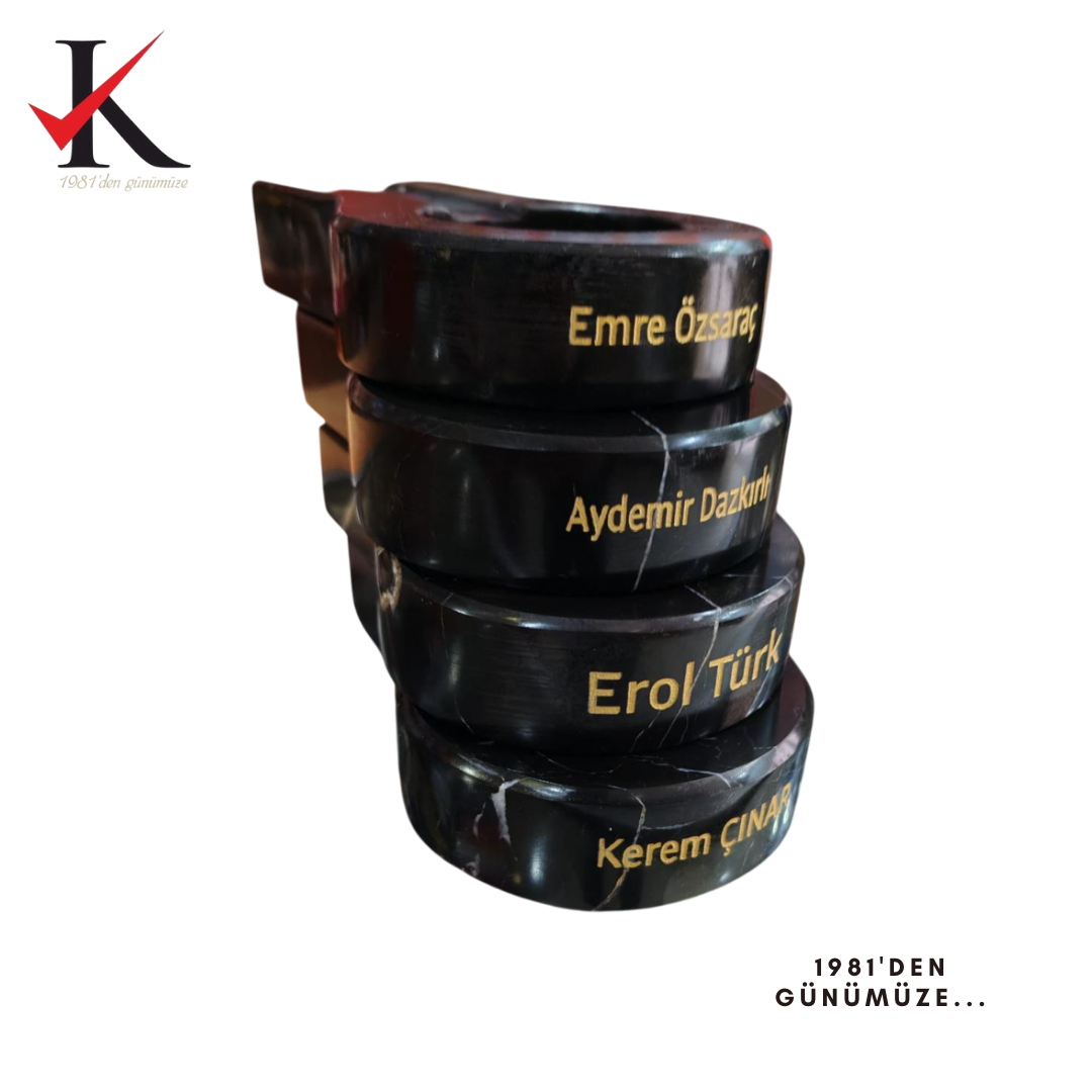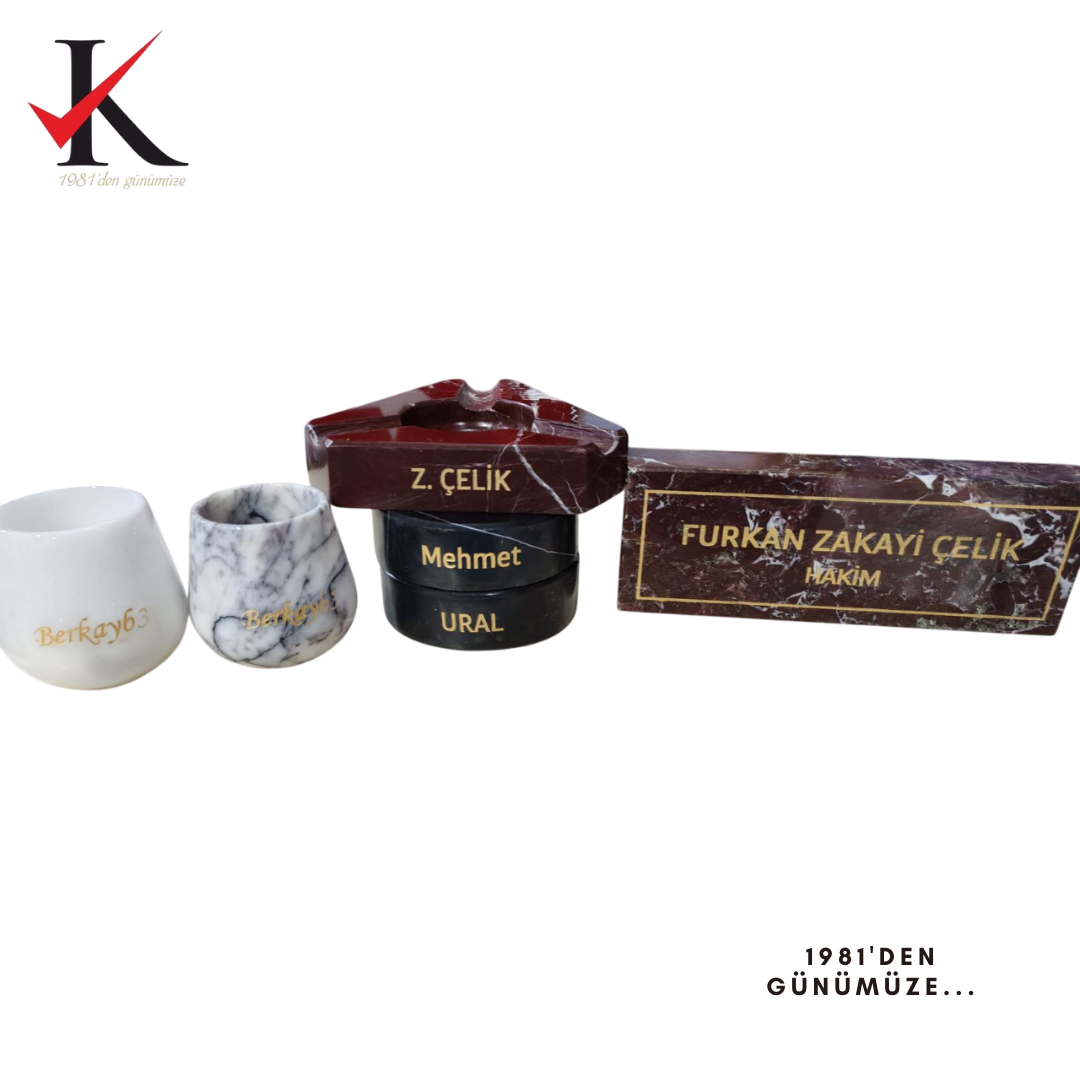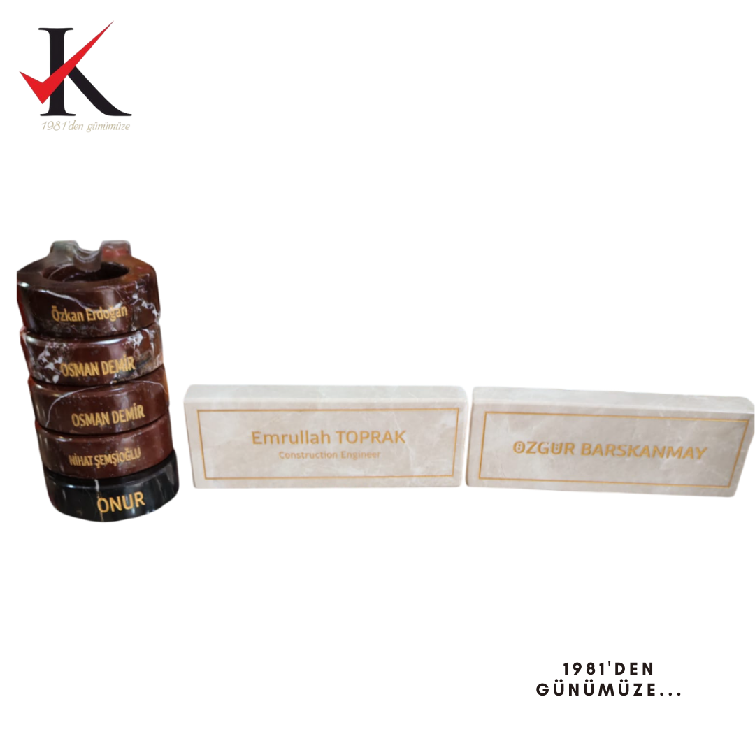 • Plaka Baskı: Metal plakalar üzerine lazer ile işlenen yazı veya desenlerin, mermer üzerine monte edilmesiyle elde edilen bu yöntem, ürününüze farklı bir estetik kazandırır.
