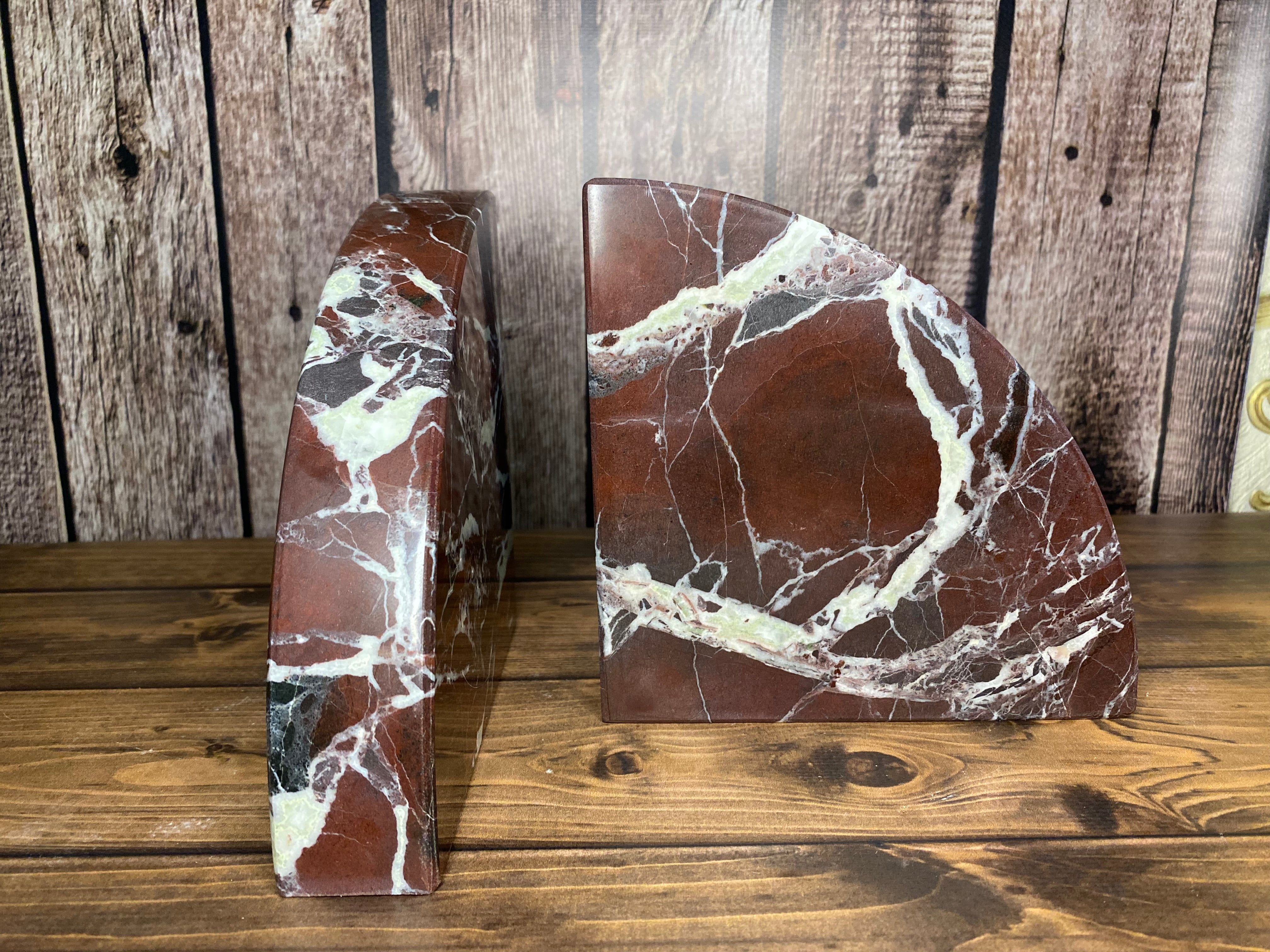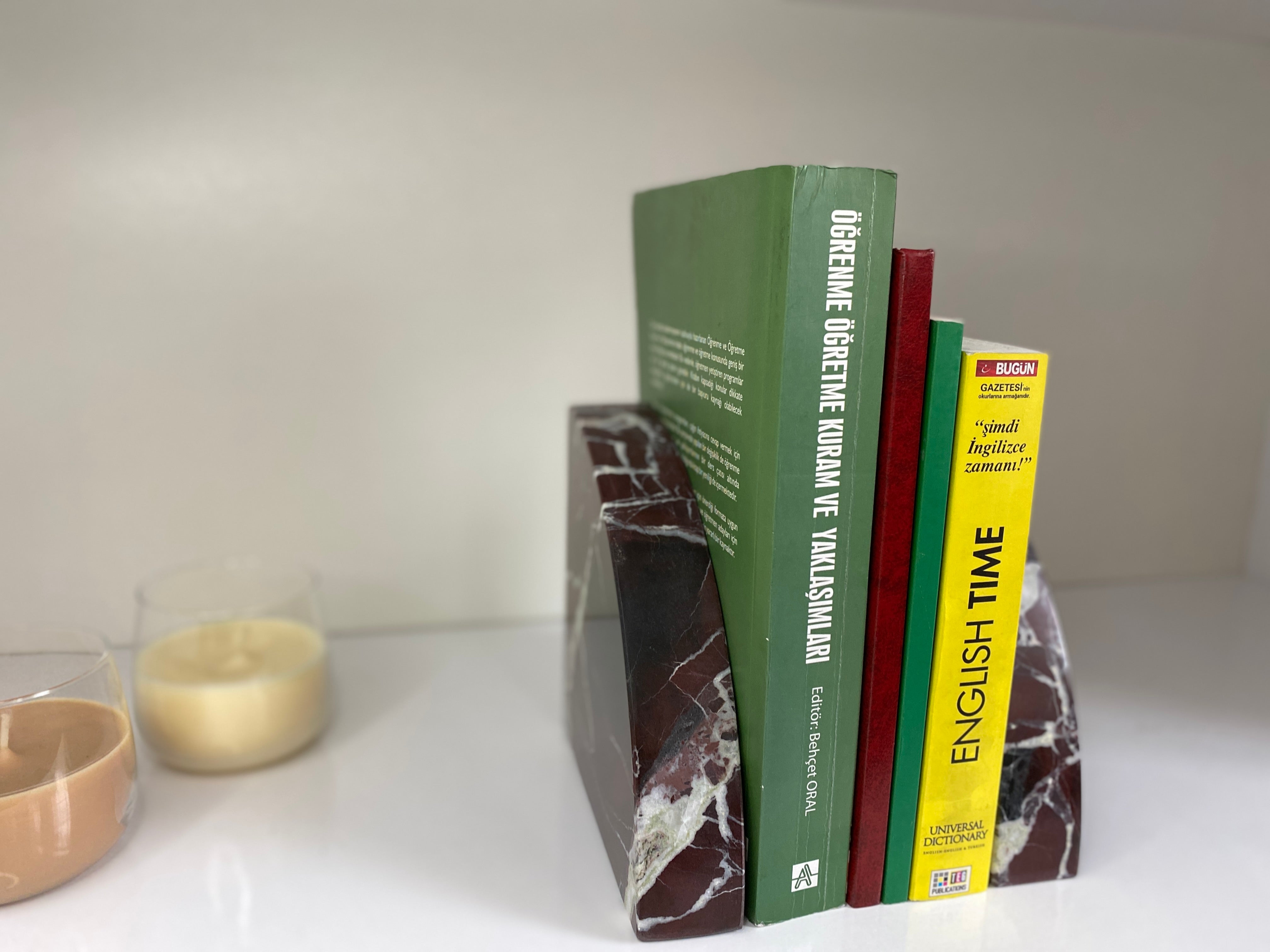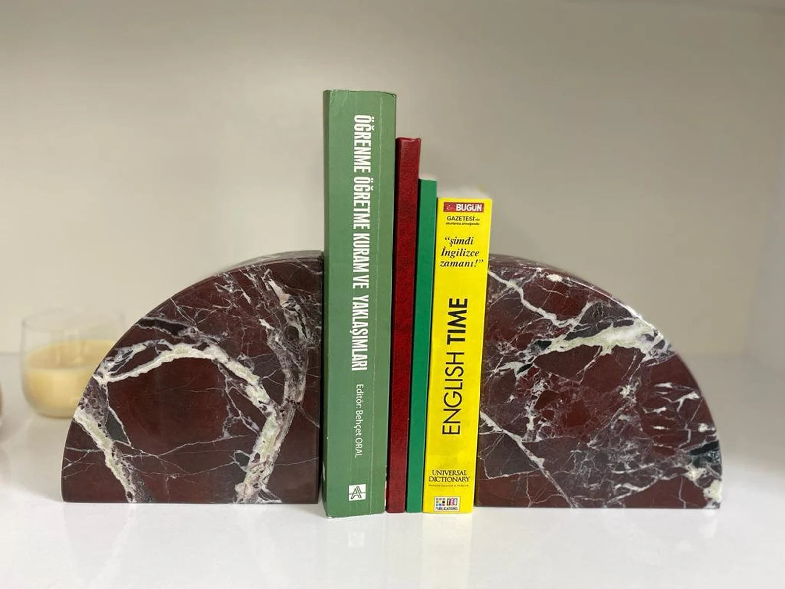 Vişne Çürüğü Rengi El Yapımı Mermer Kitap Tutucu - 2'li Şık ve Dayanıklı Set